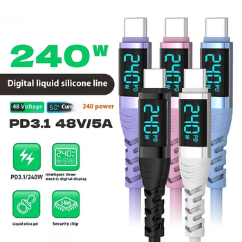 240w डिजिटल डिस्प्ले लिक्विड सिलिकॉन तार यूएसबी सी टाइप सी सी से टाइप सी सी फास्ट चार्जिंग केबल
